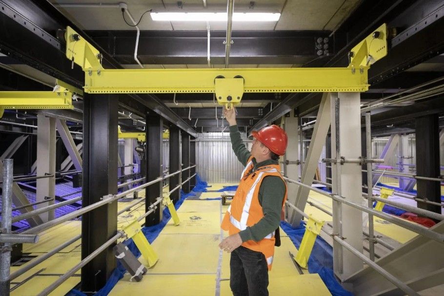 And above all of that sits the loading gallery - where a selection of sturdy chain hoists able to pick up very heavy weights - up to 7.5 tonnes - are located.