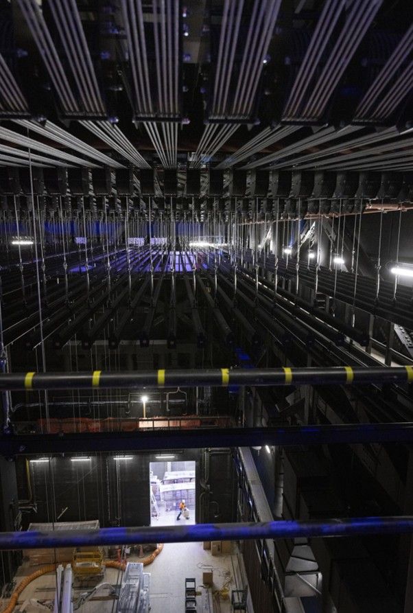 This view from near the top of the fly tower gives an indication of the sheer scale and complexity of the theatre’s flying system. PHOTO: Kelly Hodel / WAIKATO TIMES.