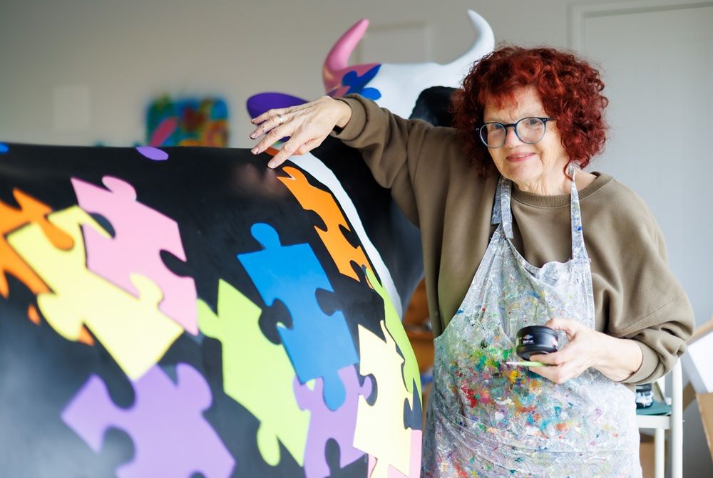 ABOVE: Catherine Wolicki-Hunt paints a cow for Morrinsville. PHOTO: Mike Walen / KeyImagery.
