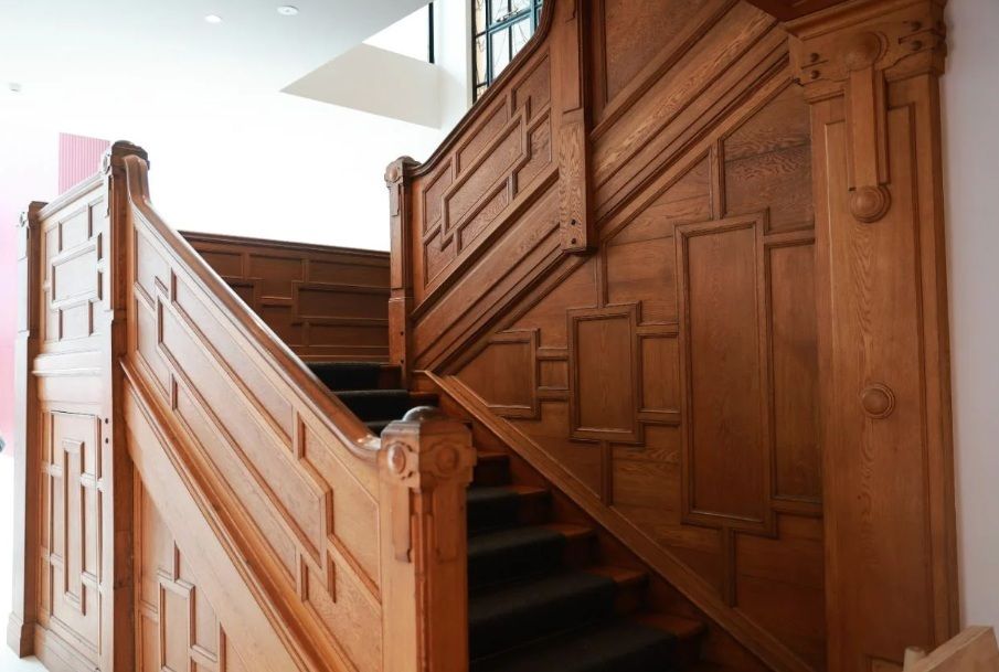 A 102-year-old staircase, made of American oak and formerly part of the Hamilton Hotel, now stands again in almost exactly the same location it once did. Salvaged before demolition of the old building, the staircase was carefully dismantled and stored under the guidance of Heritage New Zealand.